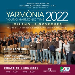 Il Coro CET e il Centro Nazionale Coralità del CAI sono lieti di invitarvi all’edizione 2022 di Yarmònia – Young Harmonic Time